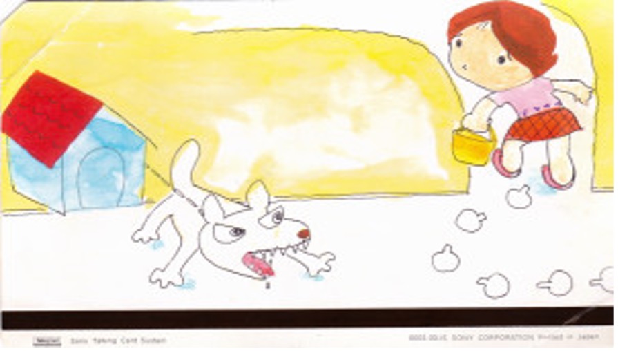 グループ指導の第四段階になると、トーキングカードの絵の世界で、長いストーリーの様々な物語の理解と表現が出てきています。