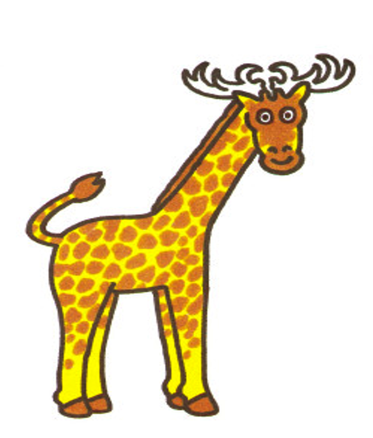 上記の絵で上記の絵を見て、「何が変ですか」と聞いて、「アヒルがボートに乗ってるのが変」「道路で魚釣りしてる、道路じゃ釣れないでしょう」「キリンなのに鹿の角が生えておる」などと答えられると、普通と違う点の説明力が高いと言えます。